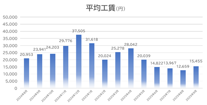 2025年9月分工賃実績